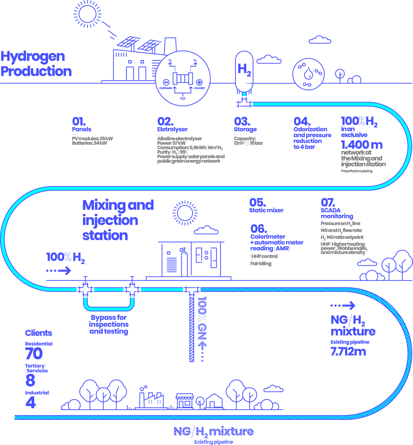 In the event of a serious failure of the system, the MIS cuts off the hydrogen injection, always ensuring the supply with natural gas.